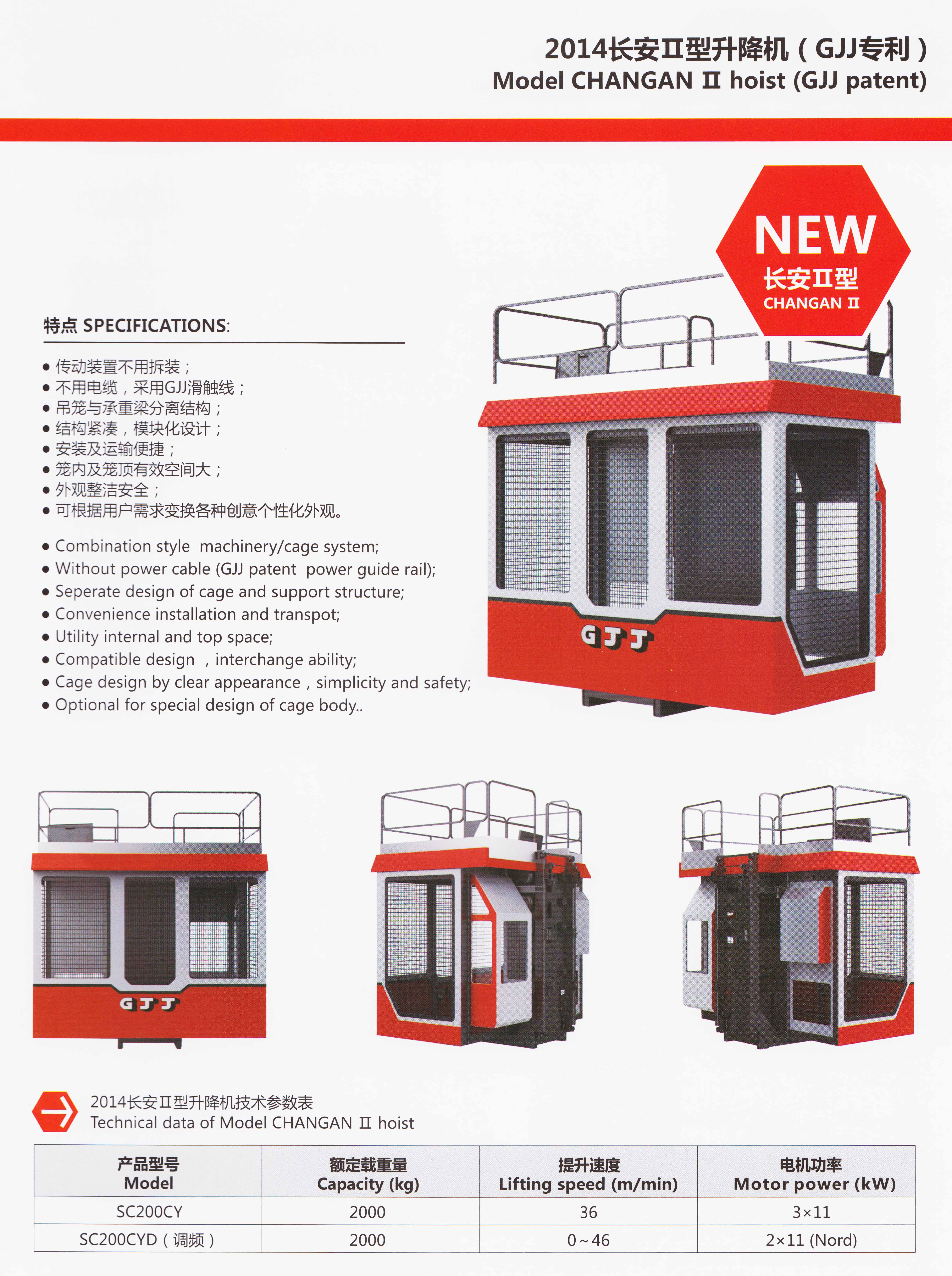| Model CHANGAN Ⅱ hoist (GJJ patent) | |||